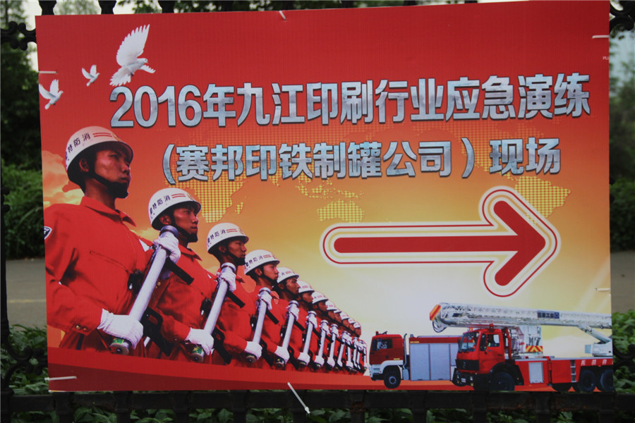 本次演練地點設(shè)在位于九江鎮(zhèn)龍高路的佛山市南海賽邦印鐵制罐有限公司,演習(xí)共分三個階段。